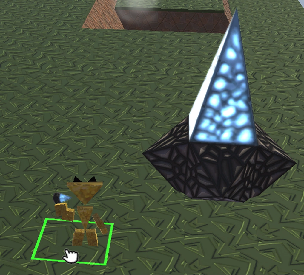 The remote trigger version of the flat bomb is based on a cube of Brimstone with a square based pyramid of Rubble attached to each vertical side. The top face of the cube has a tall square pyramid of Moonstone attached (think of this as a WiFi receiver for the detonation signal).